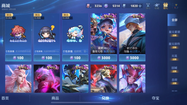 而星币商城中的优质皮肤也非常多,比如刘备的时之思念,还有鲁班七号的年限星传说。另外根据网友爆料的消息,接下来王昭君偶像歌手的一套星元皮肤,也会加入星币商城。