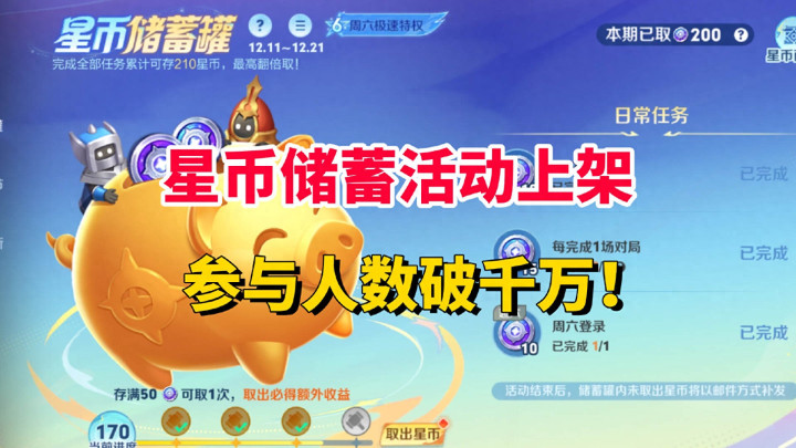 如下图所示,这个活动就是星币储蓄罐,这种类型的活动,在王者荣耀中也是第一次出现。